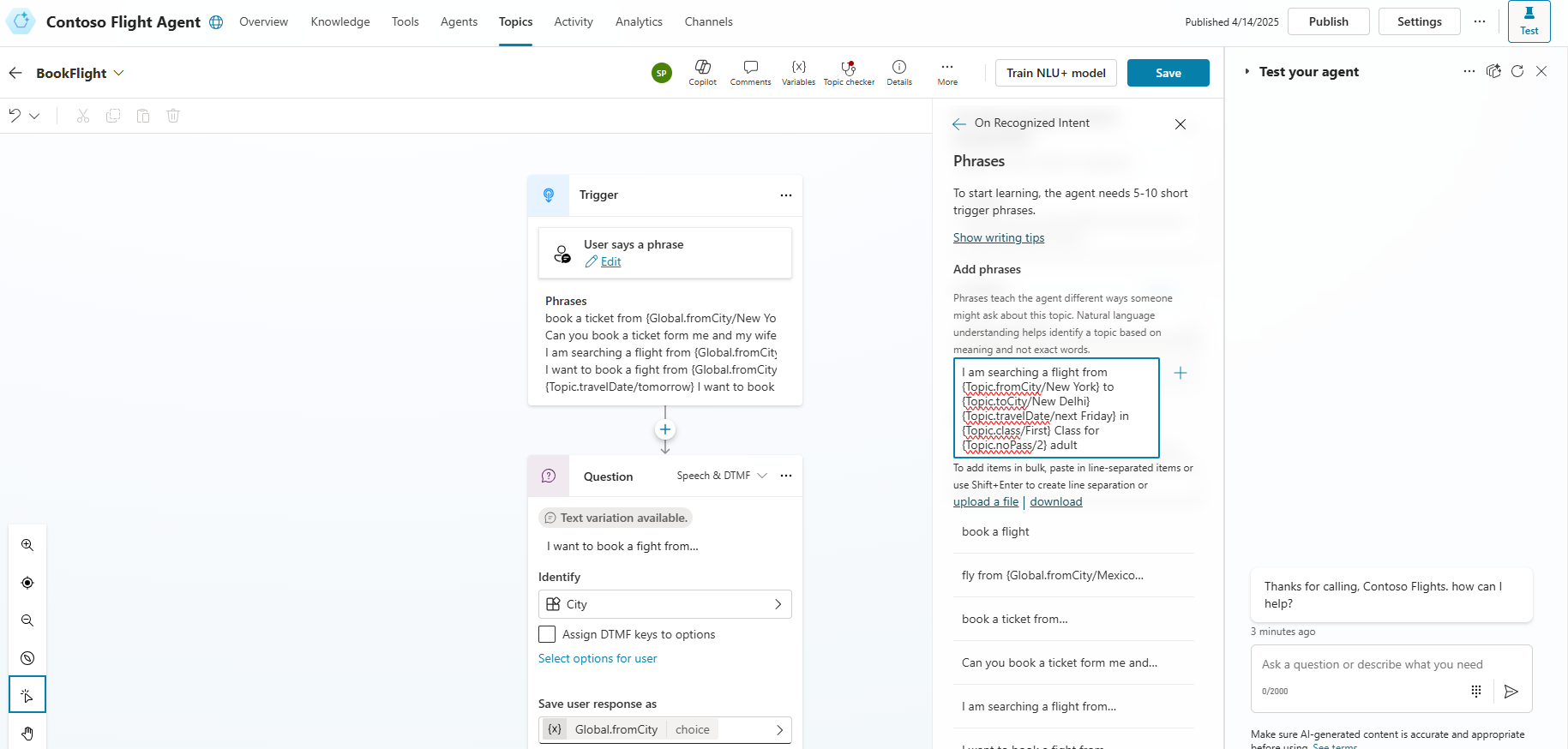 NLU+ giver fuld, gentagelig kontrol over din agents samtaler, en tilpasset dialogboks og høj nøjagtighed for kundens forespørgsler. NLU+ er ideel til store programmer i virksomhedsklassen. Disse typer programmer består typisk af et stort antal emner og enheder og bruger et stort antal træningseksempler. Hvis du har en stemmeaktiveret agent, bruges dine NLU+-oplæringsdata også til at optimere dine funktioner til talegenkendelse.