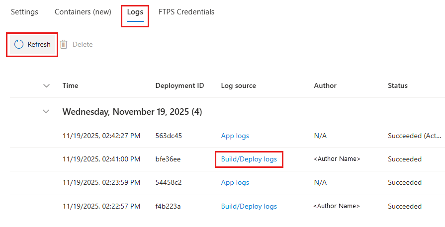 Siehe Einrichten der GitHub Actions-Bereitstellung im Deployment Center.
