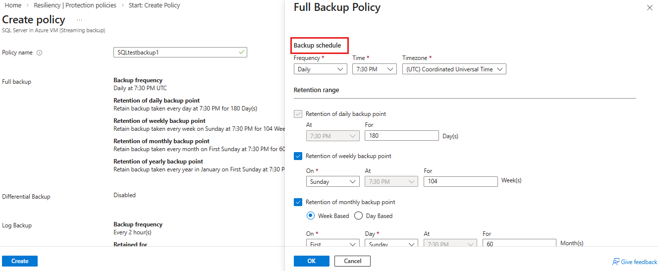 Konfigurieren Sie im Bereich "Vollständige Sicherungsrichtlinie " die folgenden Einstellungen für den Sicherungszeitplan: