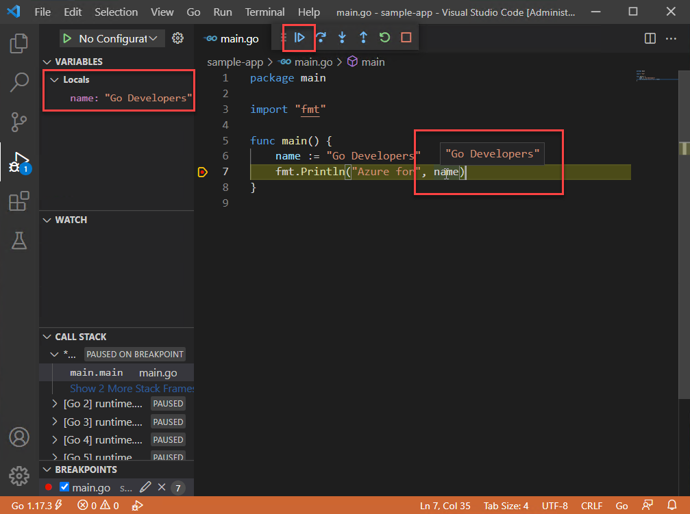 In dieser Schnellstartanleitung installieren Sie den Go-Compiler und die Tools, installieren Visual Studio Code zum Schreiben von Go-Code und installieren die Go für Visual Studio Code-Erweiterung, die Unterstützung beim Schreiben von Go bietet. Nach der Konfiguration erstellen Sie eine Anwendung, führen sie aus, und verwenden Sie das Debuggingtool, um die Ausführung anzuhalten und den Wert von Variablen zu beobachten.