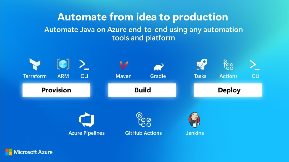 Mit Azure können Sie mithilfe einer breiten Palette von Tools und Plattformen automatisieren – von der Idee zur Produktion. Allgemein betrachtet können solche Automatisierungspipelines in drei Kategorien unterteilt werden: