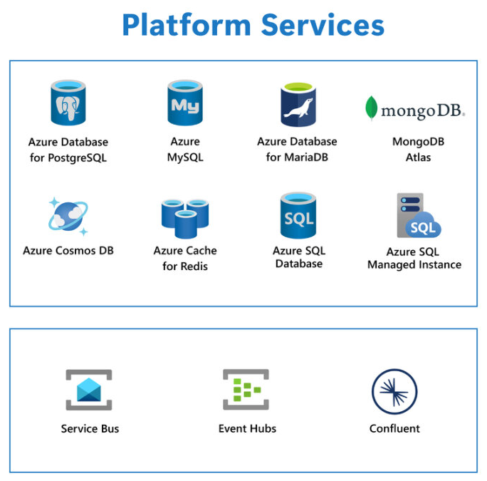 Zusätzlich zur Bereitstellung mehrerer Optionen für die Ausführung Ihres Java-Codes bietet Azure eine breite Palette von vollständig verwalteten Services zur Unterstützung Ihrer Datenbankanforderungen – einschließlich Azure Database for PostgreSQL, Azure Database for MySQL, MongoDB Atlas, Azure Cosmos DB, Azure SQL-Datenbank und Azure SQL Managed Instance. Dies gilt auch für Messaging, mit Optionen wie Azure Service Bus, Azure Event Hubs und Apache Kafka for Confluent Cloud.