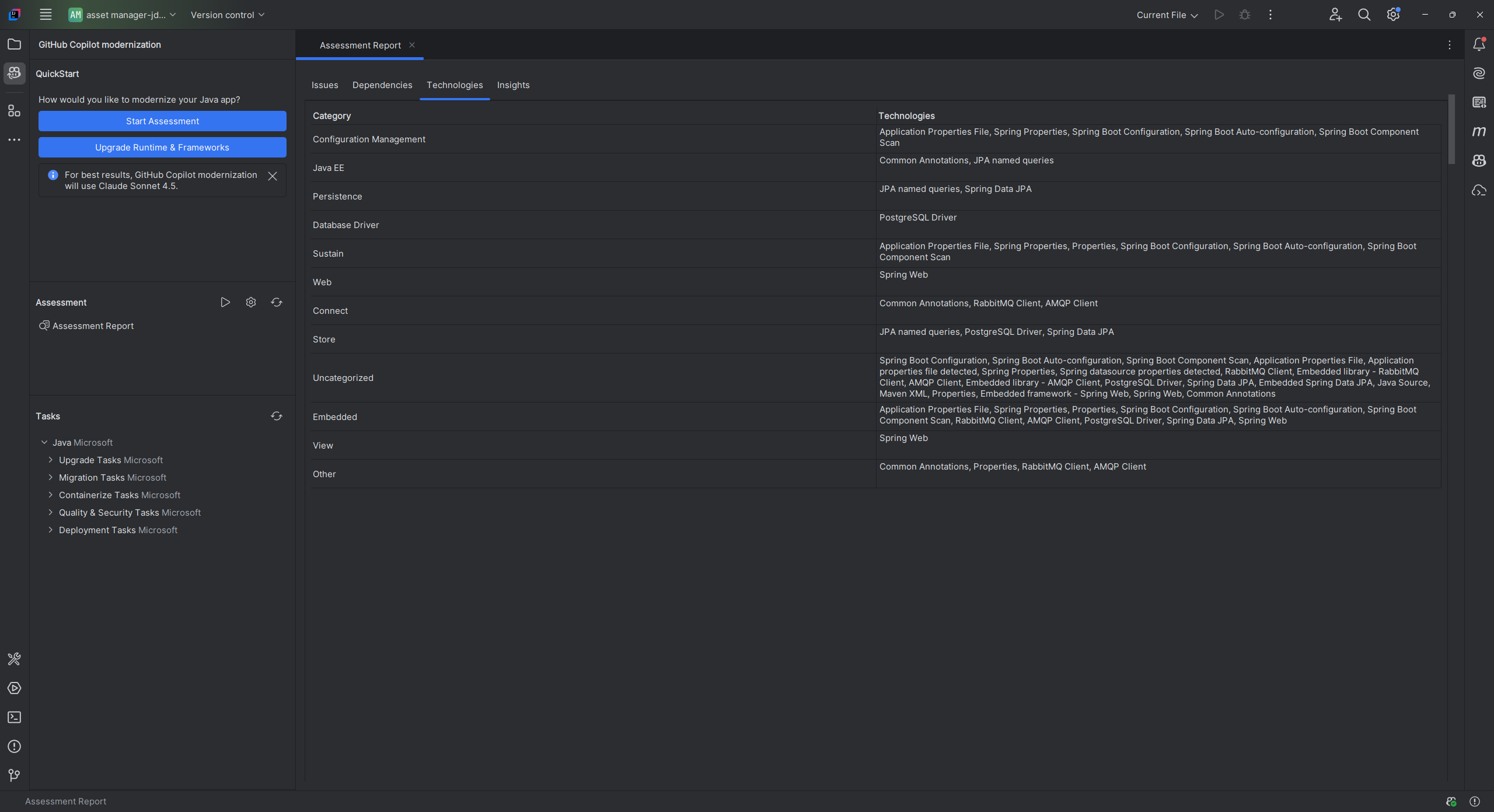 - Anwendungsinformationen: Grundlegende Informationen zu Ihrer Anwendung, einschließlich Java-Version, Frameworks, Buildtools und Projektstruktur.