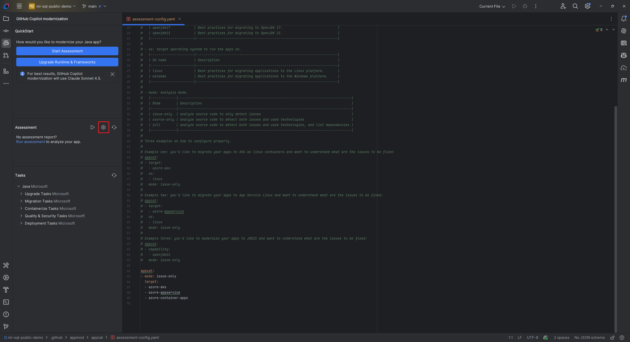 Zwei Bewertungseinträge für unterschiedliche Zwecke: Die GitHub Copilot-Modernisierung bietet zwei Möglichkeiten, eine Bewertung zu starten: