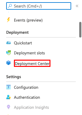 | Wählen Sie, wenn Sie wieder auf der App Service-Seite sind, im linken Menü Bereitstellungscenter aus. |