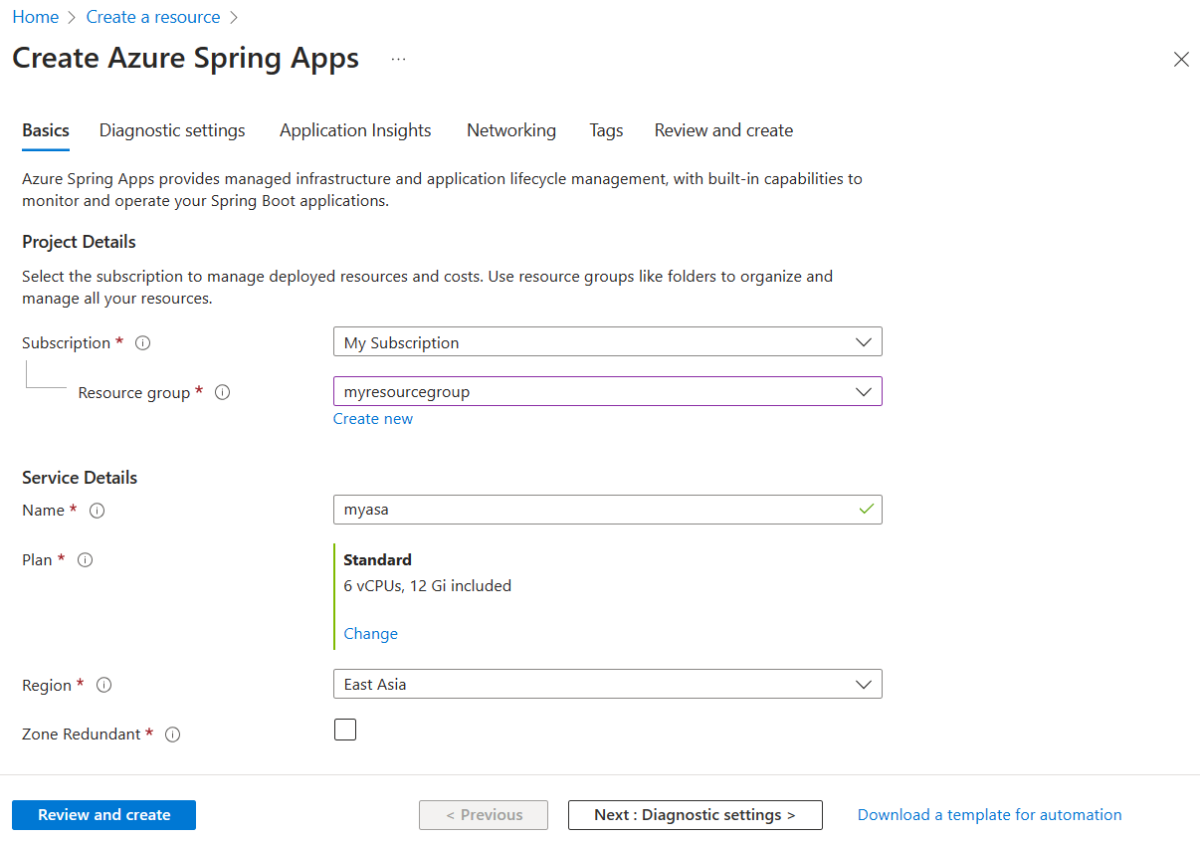3.2. Erstellen einer Azure Spring Apps-Instanz