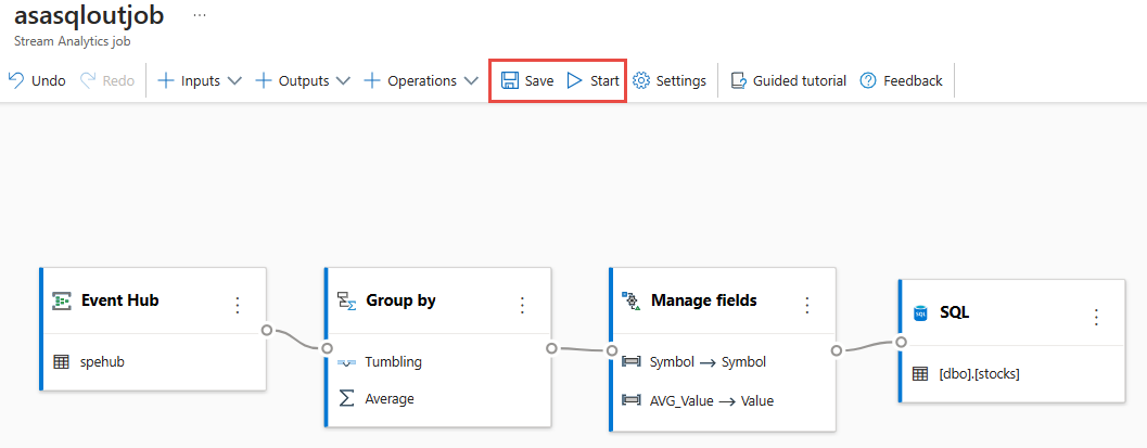 Wählen Sie Speichern und anschließend Starten aus, um den Stream Analytics-Auftrag zu starten.