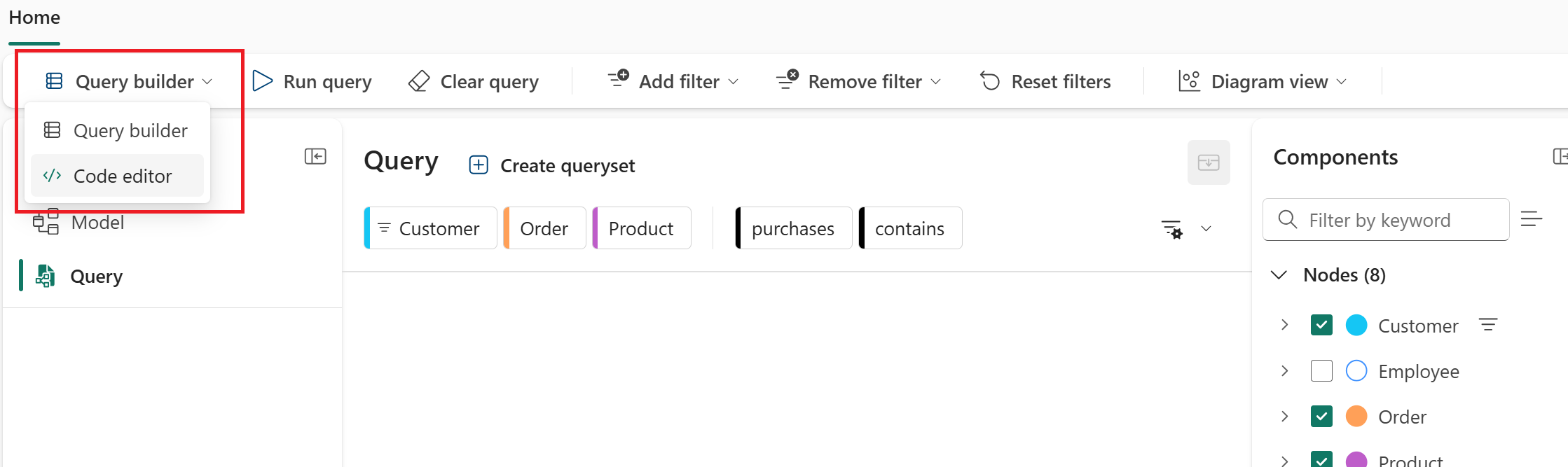 Im vorherigen Lernprogrammschritt haben Sie den Abfrage-Generator verwendet, um zu ermitteln, welche Produkte ein bestimmter Kunde erworben hat. Dies ist die gleiche Abfrage, die in GQL geschrieben wurde: