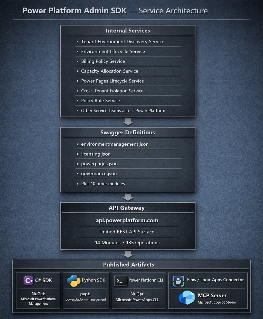 Das Python SDK wird als PyPI-Paket mit dem Namen powerplatform-management verteilt. Es ist eine stark typisierte Darstellung der Microsoft Power Platform-API für Python-Entwickler.