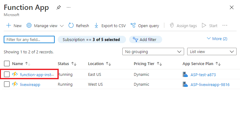 Click the Select button under Configure required settings to choose from the list of available function apps: