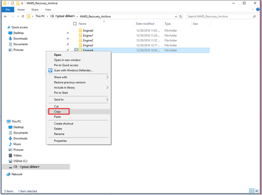In Windows Explorer, copy the files and folders you want to restore and paste them to any desired location on the server.