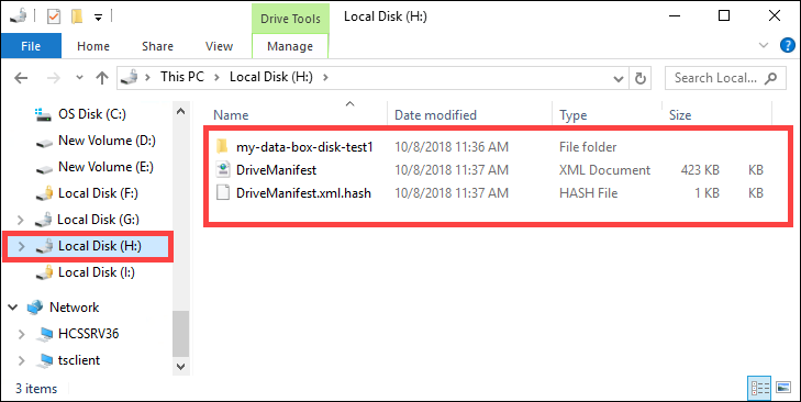 Open File Explorer. Make a note of the data source drive and drive letters assigned to Data Box Disk.
