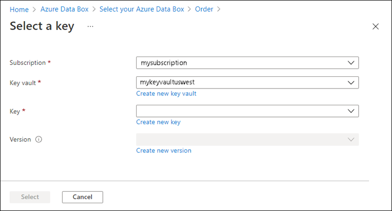 • For Key vault, you can select an existing key vault from the dropdown list.