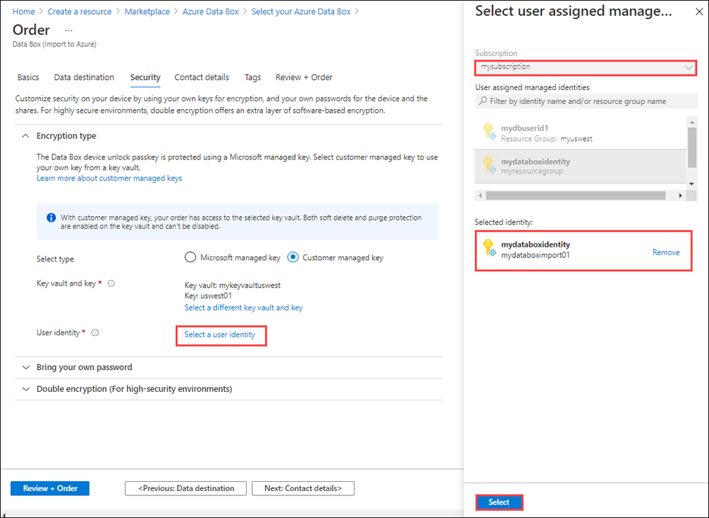 Configuring a customer-managed key for your Azure Data Box Disk is optional. By default, Data Box uses a Microsoft managed key to protect the unlock passkey.