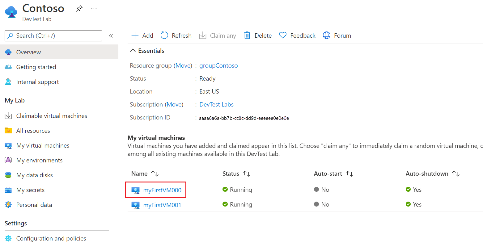 On your lab Overview page, select the VM under My virtual machines.