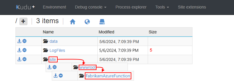 On the next page, from the folder list, select site > wwwroot > your-function.