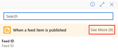 If no outputs appear available under When a feed item is published, select See more.