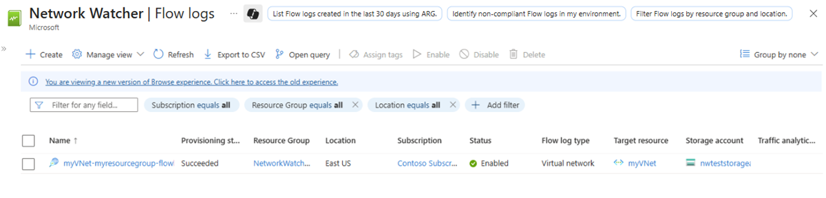 • Enable flow logging for a virtual network using Network Watcher flow logs