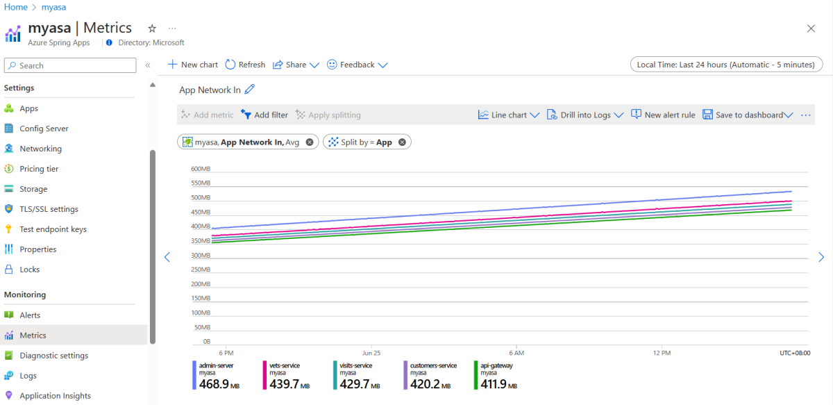 This section explains how to use the default metrics defined by Spring Boot and custom metrics defined in the application code. These metrics are available for applications running on Azure Spring Apps.