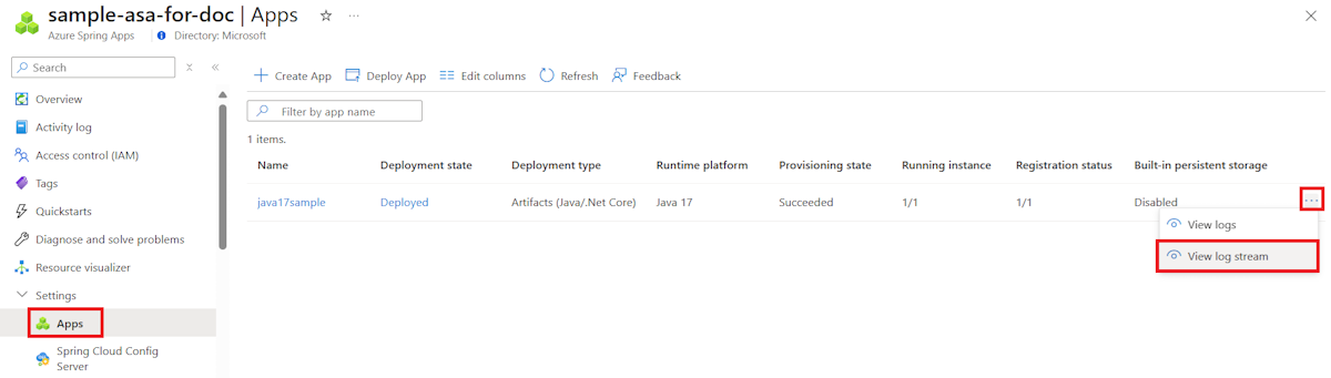 Go to the Overview page for your Azure Spring Apps service instance and then select Apps in the navigation pane.