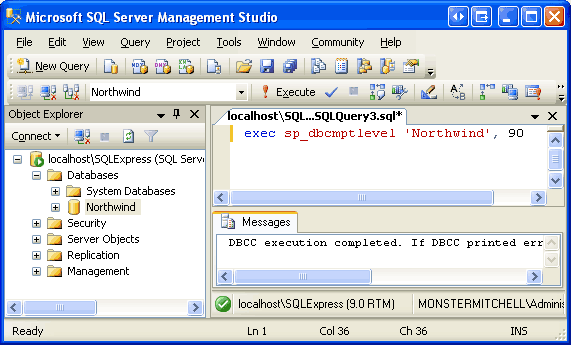 exec sp_dbcmptlevel 'Northwind', 90
