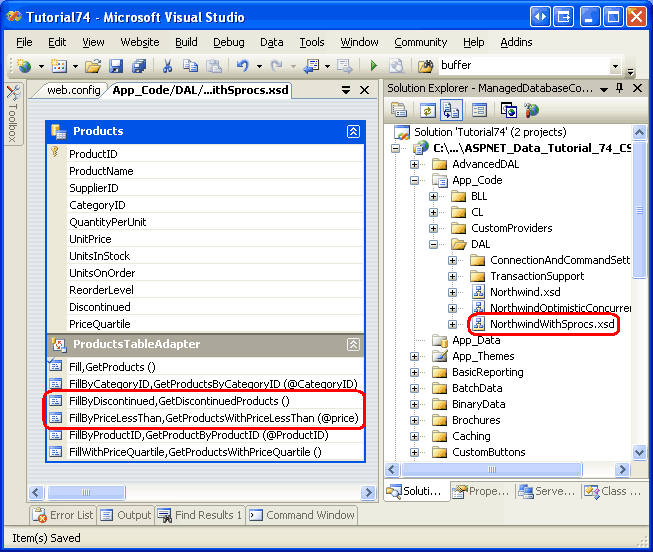 Figure 8: Add a New Stored Procedure Named GetDiscontinuedProducts.vb (Click to view full-size image)
