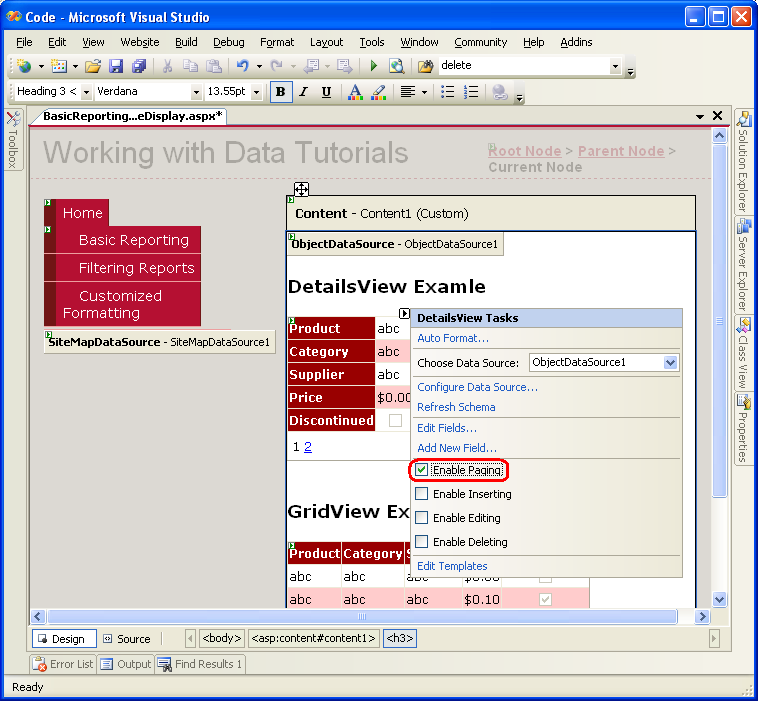 Step 2: Adding a Data Web Control and Binding it to the ObjectDataSource