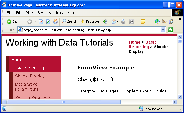 Figure 18: The First Product (Chai) is Displayed in a Custom Format (Click to view full-size image)