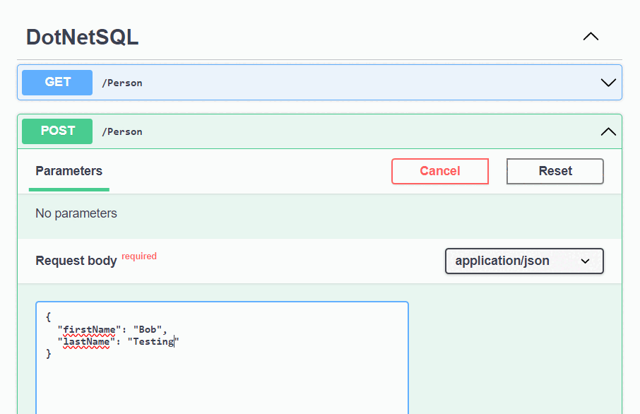 4. Expand the GET method on the Swagger UI page and select Try it. Select Execute, and the person you just created is returned.