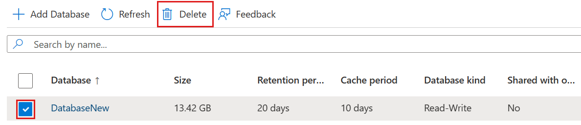 To delete a database from your Azure Data Explorer cluster: