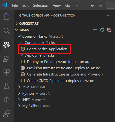 In this quickstart, you containerize your project by using GitHub Copilot modernization.