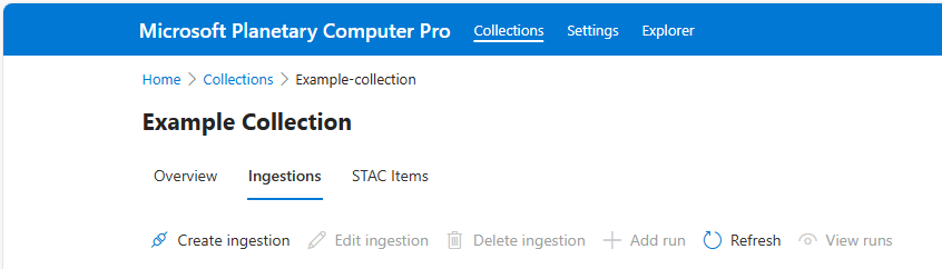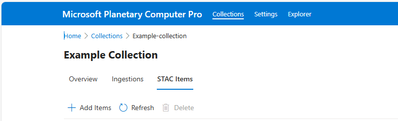 Given a preexisting STAC collection within a GeoCatalog, users can ingest new or update existing STAC items and their associated assets using Planetary Computer Pro's web interface, or the API. In contrast to Planetary Computer Pro's Bulk Ingestion feature, Single Item ingestion is intended for low-latency imports or updates vs large data migrations. For more information about bulk ingestion, see Add STAC Items to a Collection.