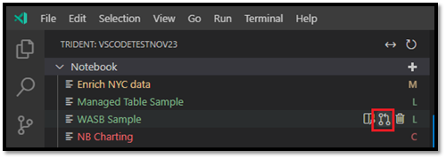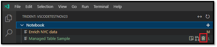 - Modified: The M character to the right of the name and yellow text indicates you downloaded and edited the notebook locally in VS Code, and didn't yet publish those pending changes back to the remote workspace.