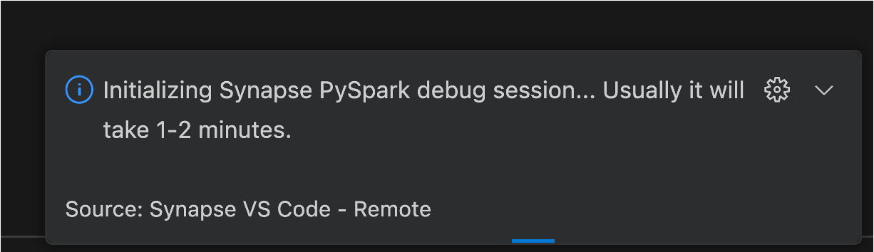 After you run this configuration, you can set breakpoints in the notebook editor and run the notebook in debug mode. When the debug session starts, a notification is shown in bottom right corner of the editor to indicate that the debug session is initiated.