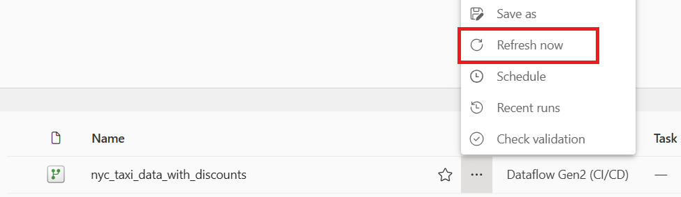 Select the refresh icon for the dataflow under the More options ellipsis, and when complete, you should see your new Lakehouse table created as configured in the Data destination settings.