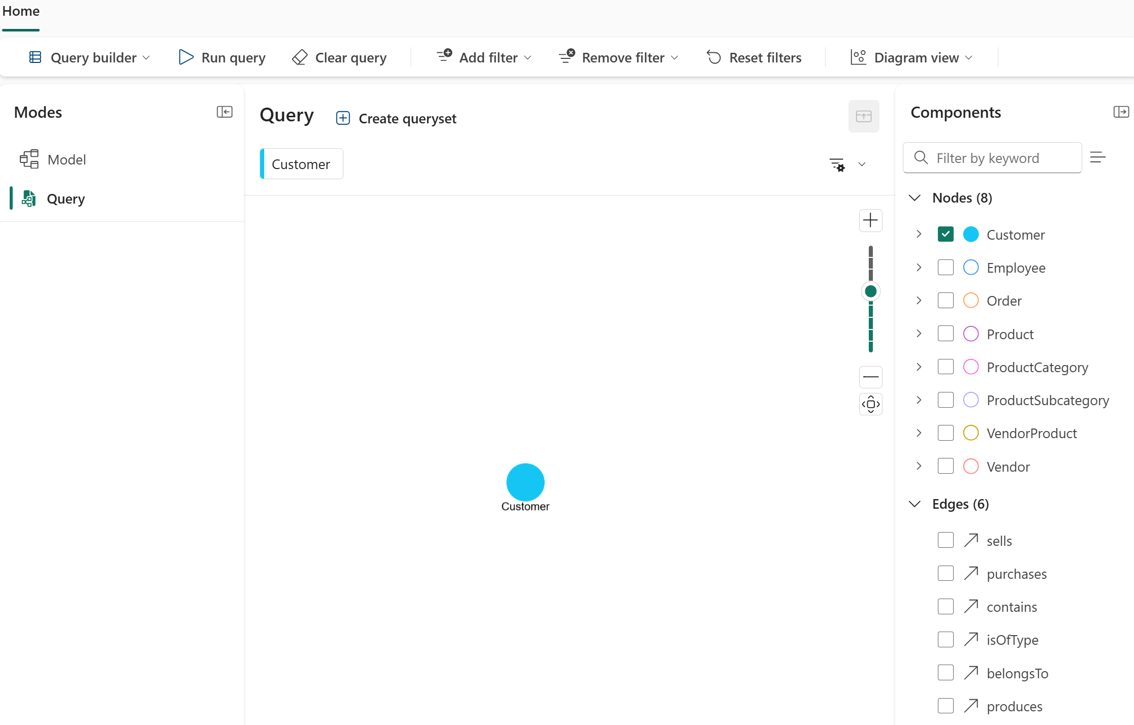 - Diagram view: Visualize the graph structure and relationships. This view is the default.