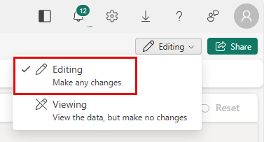 Make sure that you're in Editing mode in the dashboard before beginning the following steps. If you're not in Editing mode, toggle from Viewing on the top right corner of the dashboard.
