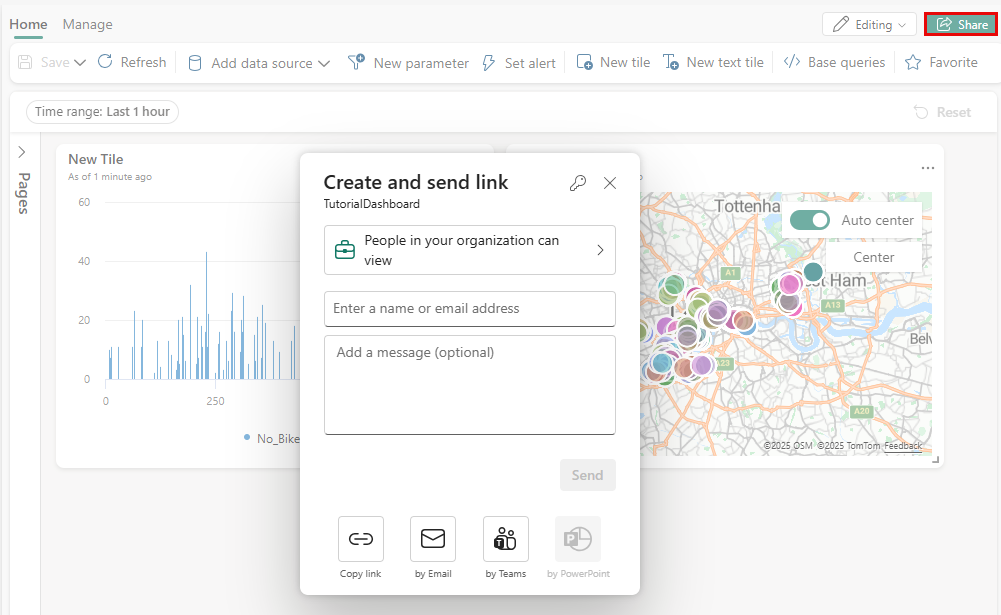 Open the TutorialDashboard, and select the Share button.