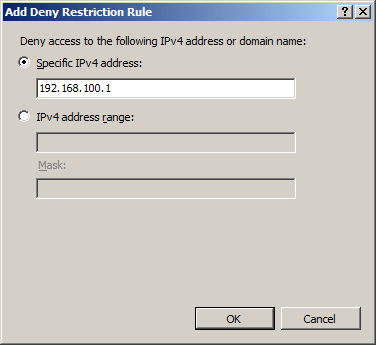 Enter the IP address that you wish to allow or deny, and then click OK.