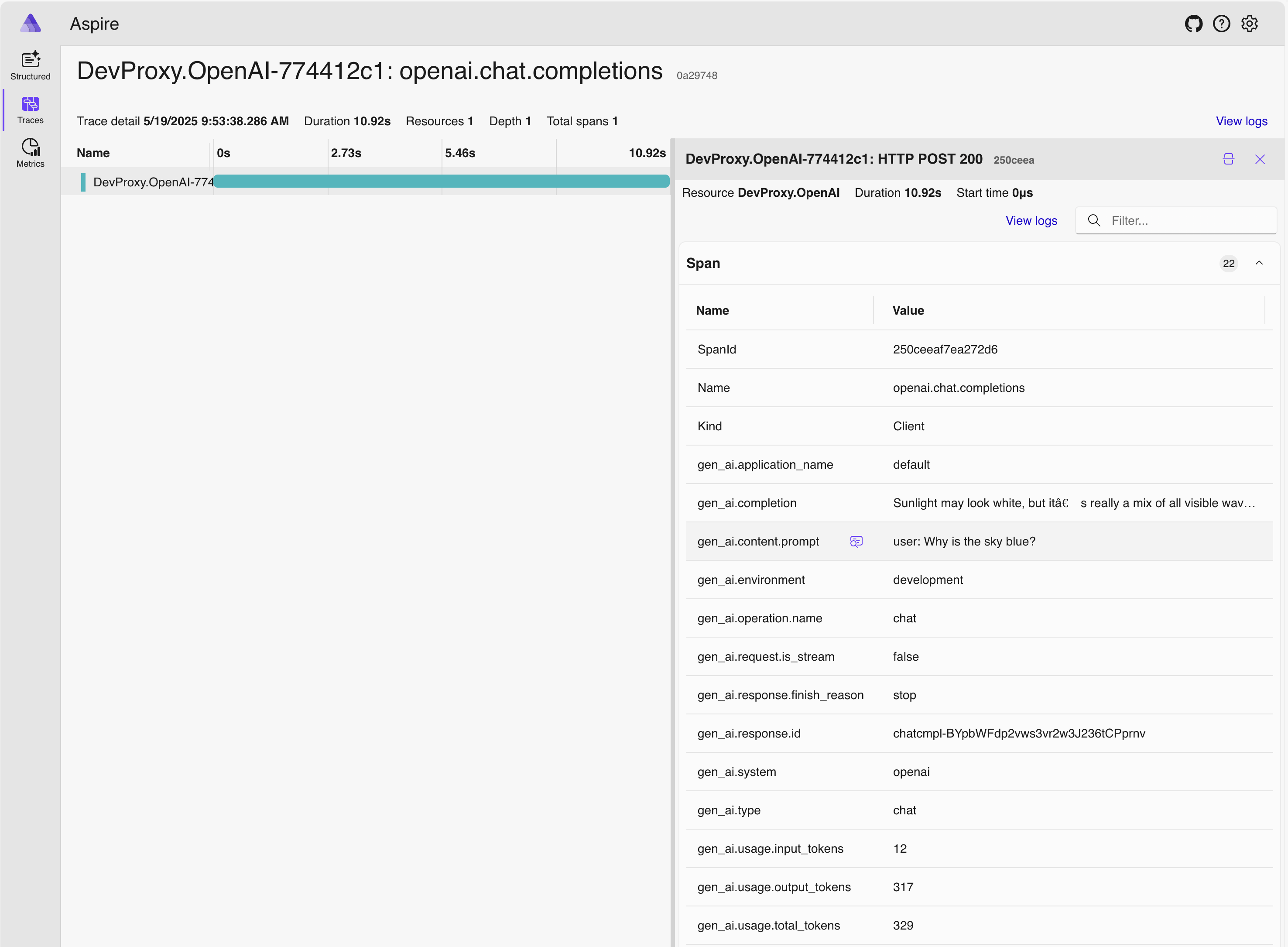 DevProxy.OpenAI.Select the request span.