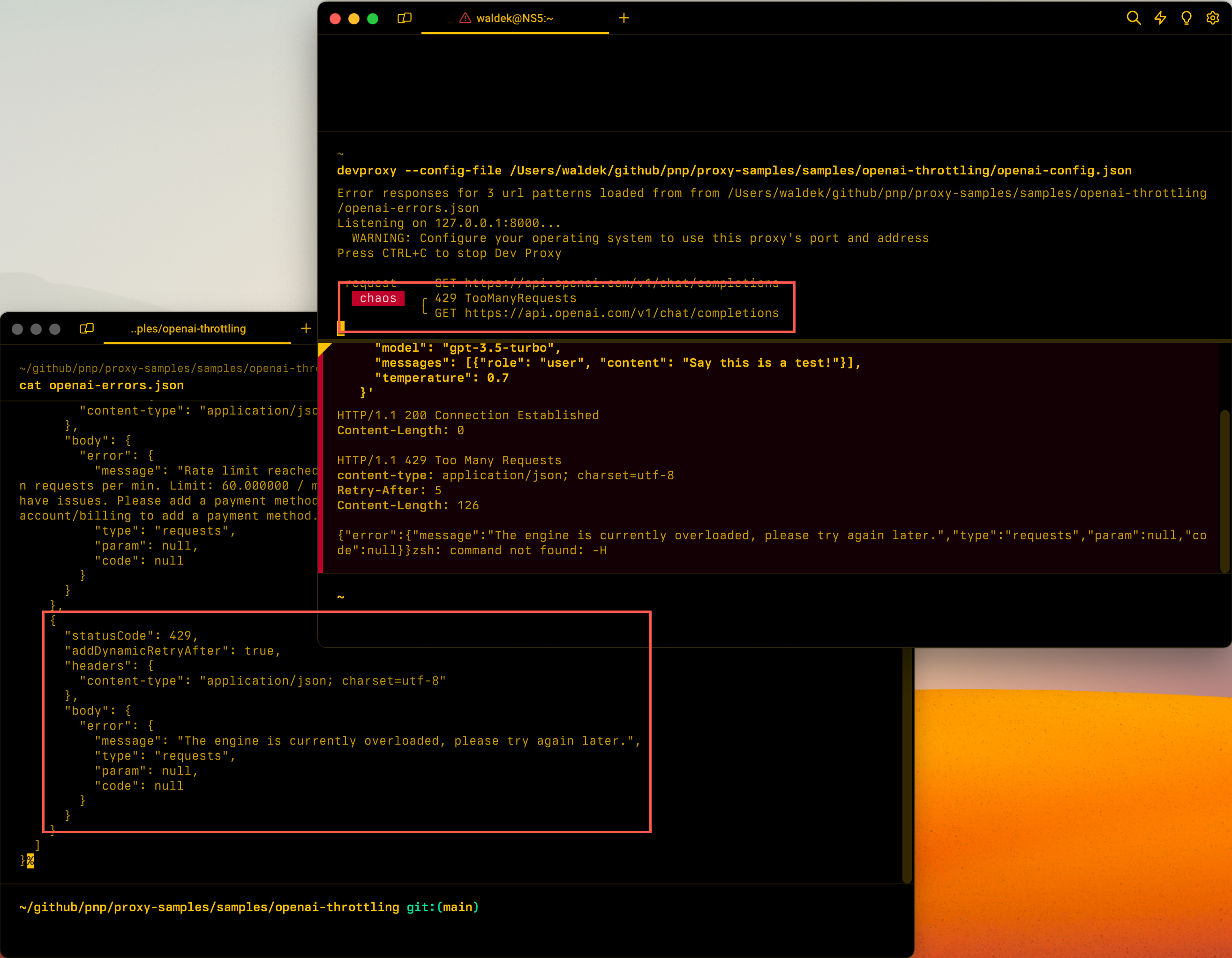 In this example, the Retry-After header uses 17 seconds for this response, regardless of the global retryAfterInSeconds setting. The value increments on each subsequent throttled request, as with the plain @dynamic token.