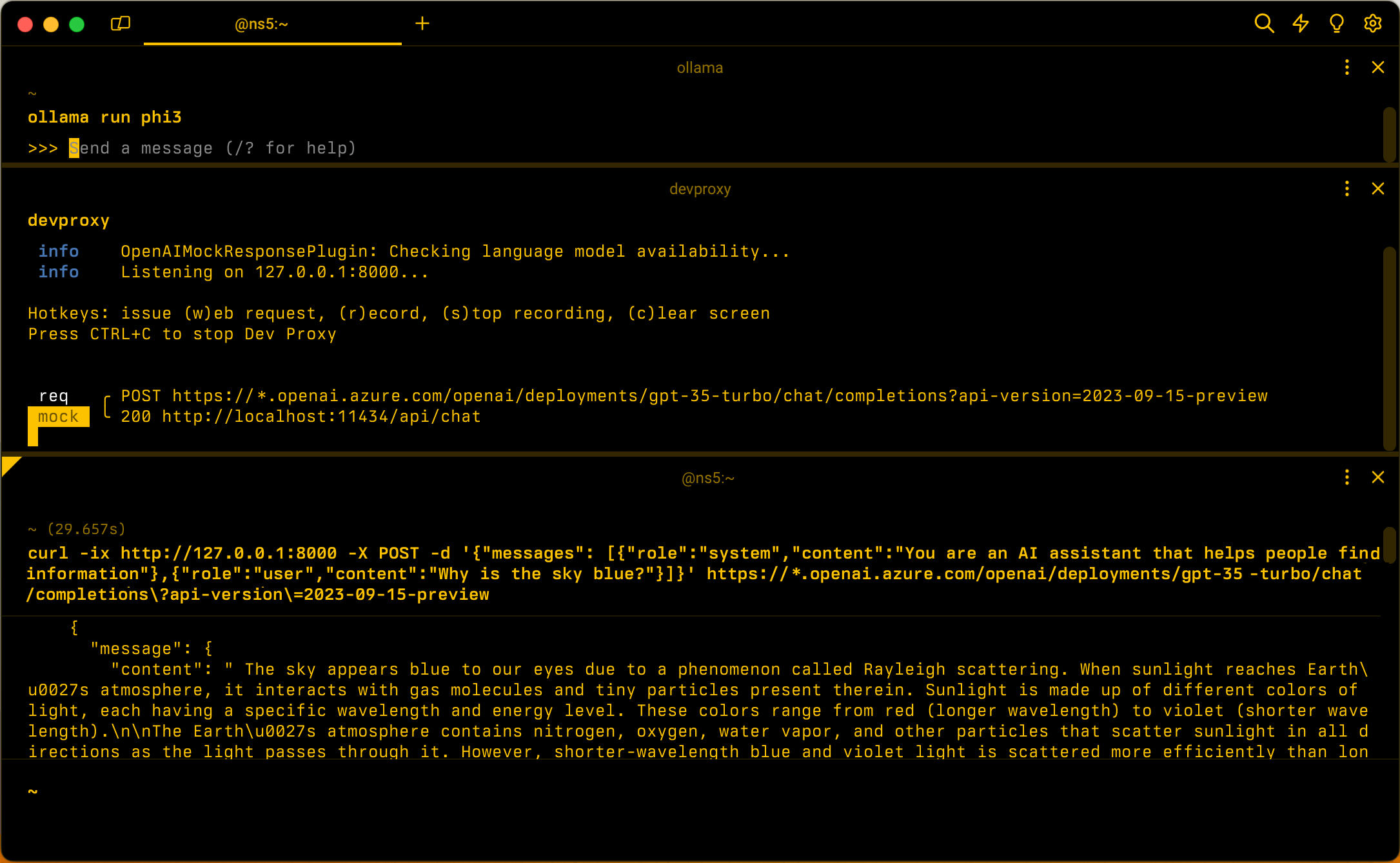 The OpenAIMockResponsePlugin plugin simulates responses from Azure OpenAI and OpenAI using a local language model. Using this plugin allows you to emulate using a language model in your app without connecting to the OpenAI or Azure OpenAI service and incurring costs.