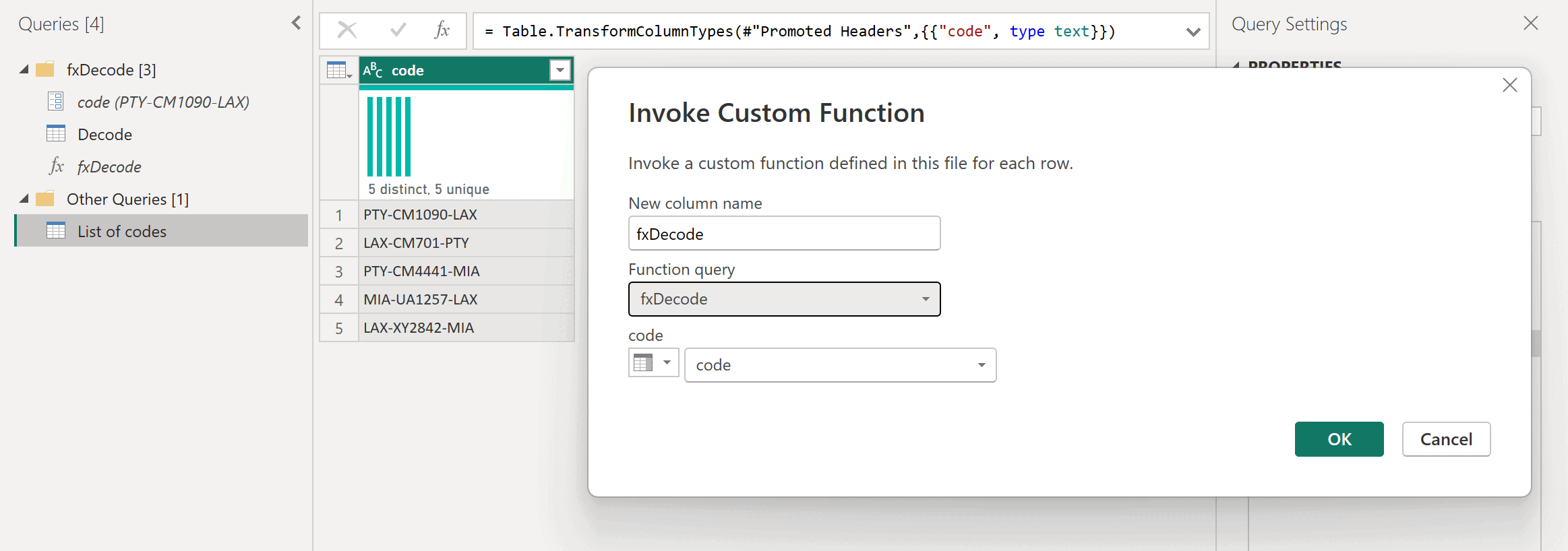 For example, imagine a query that has several codes as a text string and you want to create a function that decodes those values, as in the following sample table:
