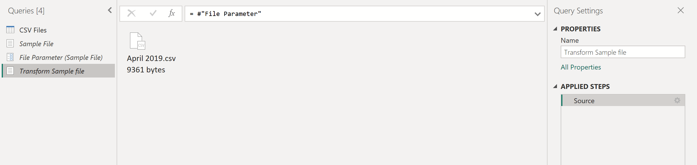 Rename the newly created query from File Parameter (2) to Transform Sample file.