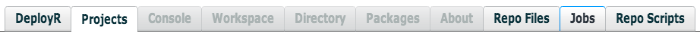 When you sign out of DeployR, most tabs are automatically disabled except the default DeployR tab and the Repo Scripts tab, which are always enabled.