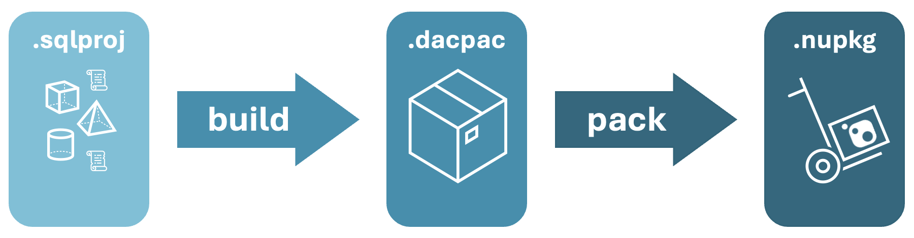 A database reference package is a NuGet package that contains a .dacpac file. The NuGet package can be published to a NuGet feed, such as Azure Artifacts, for use in SQL projects. Creating this package follows the same process as creating a NuGet package for other types of projects. For more information, see Creating a package with the dotnet CLI.