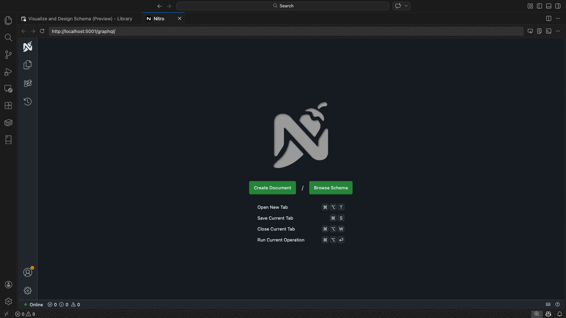 Screenshot of the Nitro GraphQL playground in the Visual Studio Code Simple Browser.