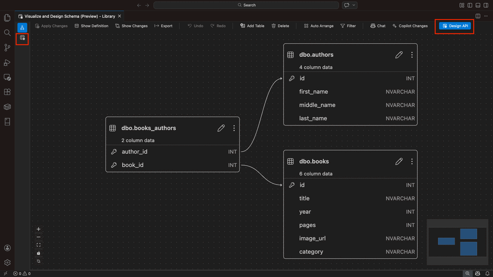 From the Schema Designer: Select the Design API button (button in the top-right corner of the toolbar), or select the Backend icon in the left-side panel.
