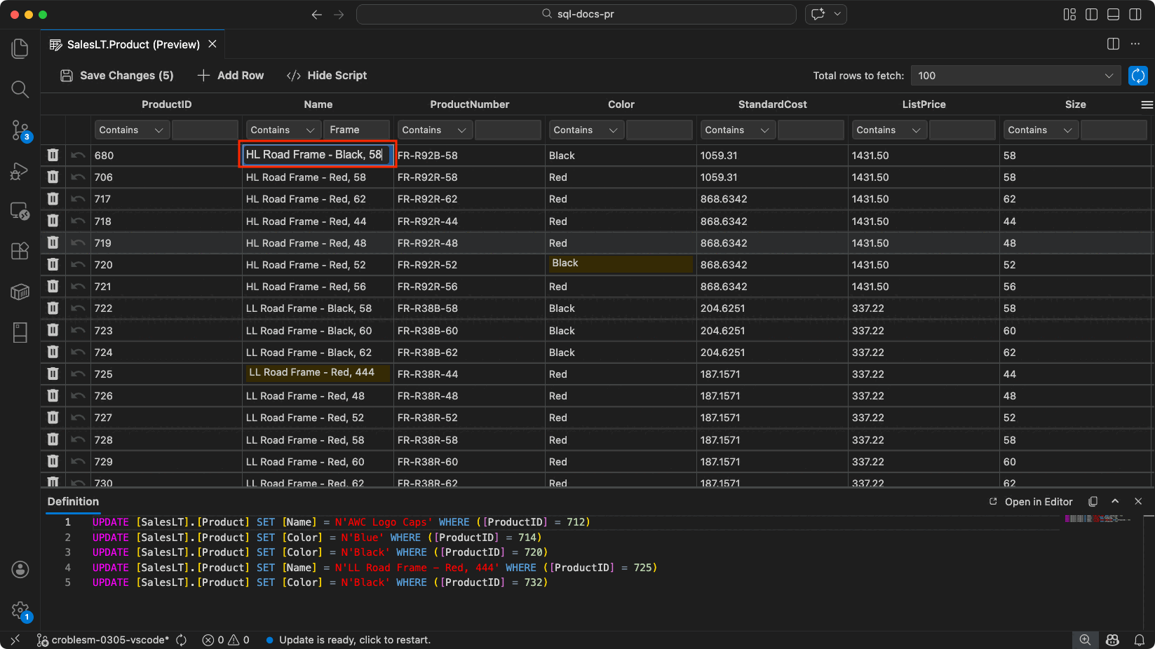 Use View & Edit Data to browse and modify table data directly within the editor, without writing T-SQL data manipulation language (DML) statements.