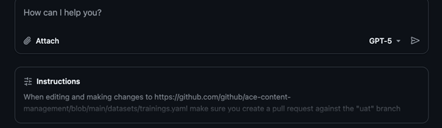 - Use the "Instructions" section to provide specific guidance to Copilot. This can include goals ("Summarize the onboarding process"), style preferences ("Write in a formal tone"), or canonical examples ("Sample output should look like…").